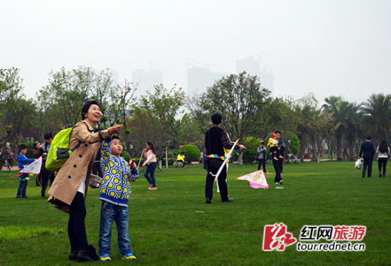 橘洲沙滩乐园的大型草坪吸引众多游人前来放飞“心愿”