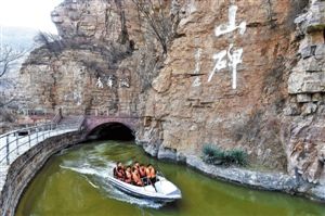 3月23日,游客乘船游览红旗渠景区青年洞景点。新华社发