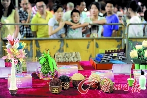 望牛墩七夕供案。广州日报记者石忠情摄