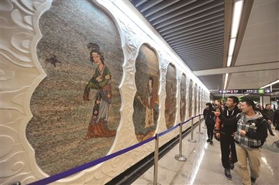 如果要在南京选出一条地铁线,满足通车前万众期待,通车后也让市民你赏我猜的话,那一定非三号线莫属。昨天,无论在网络上还是大行宫车站内,围绕红楼主题背景墙的猜谜游戏很是热闹。这谜面就是大行宫站金陵十二钗背景墙上的人物。因为这十二个艺术化的人物,造型相似妆容类同,壁画边既无旁白亦无人名提示,让男女老少猜了个热闹。