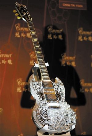 4月8日,身价超过200万美元的吉他亮相香港庆祝酒会。音乐人雷颂德获珠宝品牌邀请担任设计师,以400卡钻石镶嵌于1.6公斤的18K组成钻石吉他,成功创造“吉尼斯世界纪录”,获“最高价值吉他”殊荣。中新
