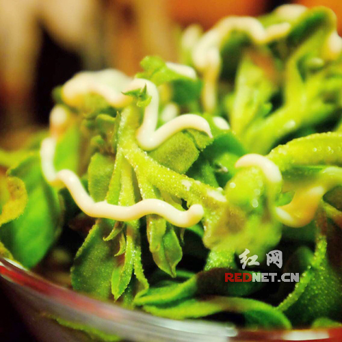 (冰草沙拉,19元/份,已经跟店长提建议了,还是放生抽辣椒凉拌的比拌沙拉酱的好吃。)