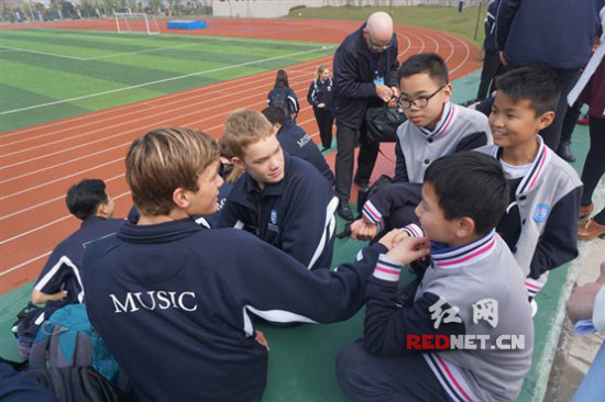(新西兰伯利恒学院学生与周南梅溪湖中学学生热情交流)