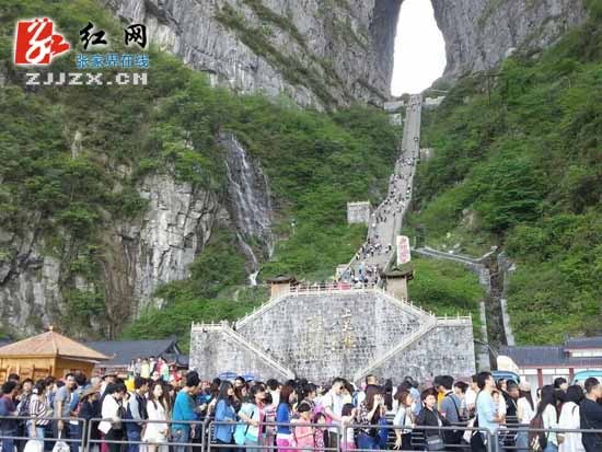 11日,因游客爆满,虽还未达到景区的接待饱和量,但为保证游览秩序及服务质量,天门山景区在下午两点就提前停售门票,当日共计接待游客近9000人,较去年同期接待人数增幅高达270%。12日,截至上午11点,天门山景区已接待游客6200余人。