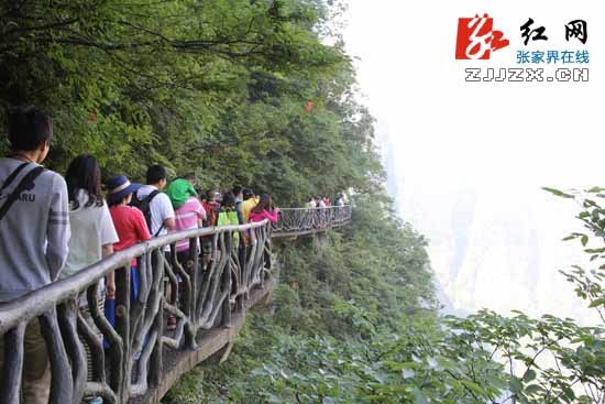 游人体验天门山顶悬崖栈道 丁云娟摄