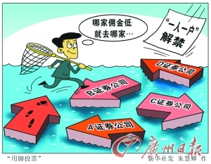 “我跟某证券公司老总很熟,一直碍于面子而把资金都放在他公司炒股,现在终于感觉解放了。”东莞某金融中介公司老板告诉记者,接下来他会在其他证券公司再开立新账户,今后在佣金方面讨价还价的余地会更大。