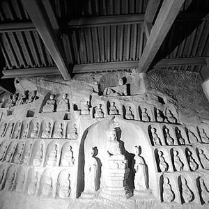 走过拱桥,拾级而上,眼前便是石马寺。石马寺以石刻造像群而名,据历史资料记载,这些石刻始建于北魏时期,后续凿于北齐、隋、唐;此后的历代,也对石刻造像有修葺和补充。