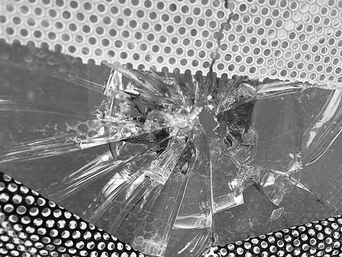 钢珠砸穿玻璃留下的大孔