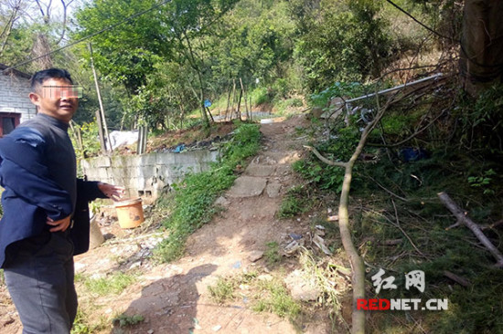 (在公交车站,蓝衣男子将游客直接带上这条小路。)