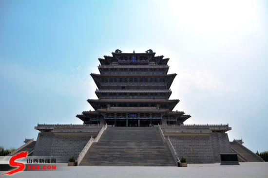 鹳雀楼内演出着唐玄宗和杨贵妃的历史剧目