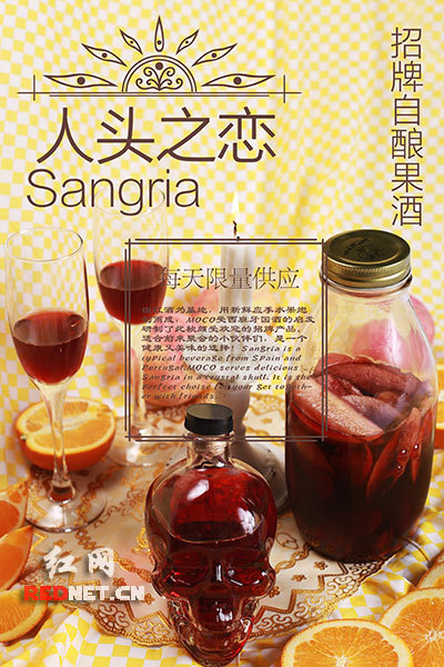红酒为基底,用新鲜应季水果泡制而成。是MOCO的调酒师受西班牙国酒的启发研制而成,聚会来上一杯,气氛棒棒的。