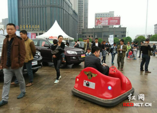 龚先生说:“昨天下午我开着玩具车在这里跑了几圈后,十几个小孩到我店里看车,一下午做了好几单,比我预料的效果还好,所以今天又开着车来了。”而一位名叫“芸芸”的小朋友母亲说,她本来是带着孩子来体验车展,没想到孩子被玩具车吸引,看完车展后就拉着她去了玩具店。