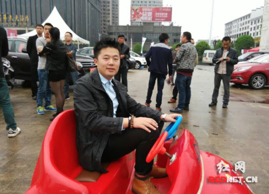 19日上午,在人潮涌动的车展现场,出现了一位驾驶童车来观展的特别观众,在人流中格外引人注目,不少观众纷纷驻足观望。驾驶童车的龚先生是车展现场附近的一家玩具店老板,昨日上午参观车展时,他发现在车展不仅人气旺,还有许多家长带着孩子一起来看车。颇具商业头脑的龚先生认为这是一个宣传自家玩具店的好时机,于是龚先生便想到利用自驾玩具车来“巡展”的方式来吸引眼球。