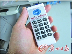 记者看到,仪器的表面有1~9的数字,还有两个按键,分别是“读卡”与“写卡”。“如果是可以复制的卡,就按‘读卡’,然后再放另外一个空卡,按‘写卡’就可以了。”该名店主跟记者介绍说。