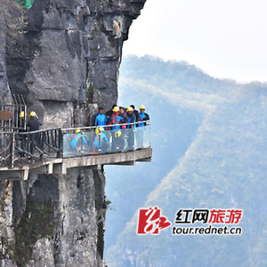 天门山西线玻璃栈道于2011年10月1日正式开放,一经面世其惊险刺激便吸引了游客无数。近两年,在微博、网络疯传的“玻璃栈道扶墙图”更是促使不少人专程来体验天门山扶墙之旅。截至2015年3月,玻璃栈道已接待中外游客430余万人。