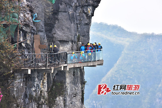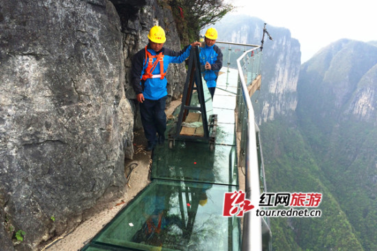 (天门山西线玻璃栈道更换玻璃 张潘摄 )