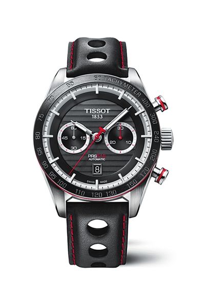 竞速系列MotoGPTM 2015限量版自动腕表则彰显着不断推动天梭前进的体育精神。红色与黑色GT条纹既醒目又美观,与风格前卫的全新表壳以及形状酷似机车脚踏板的按钮相得益彰。表圈上的制动盘、表带背面的胎痕以及表带和表壳连接件中的后轮悬架皆是来源于摩托车零部件的特色设计。