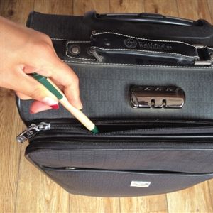 3、尽量选择可以将拉锁头固定在密码锁上的行李箱,这样即使拉链被破坏了也无法顺利地复原,便于及时发现箱子被盗。