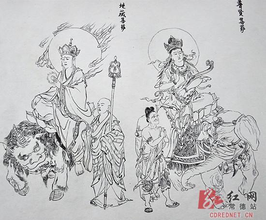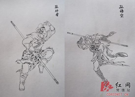 “我是以李云中的《西游记人物百图》为蓝本,半临摹半创作。”为何选择白描的方式勾勒这组人物?“白描是传统的中国画技法,我就想以纯线条的方式表现这纯正的中国传统小说。”孙建凯告诉记者。