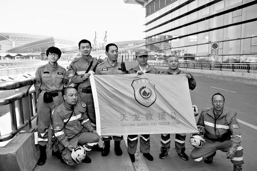 天龙救援队7名队员从太原武宿机场准备出发 本报记者马立明摄