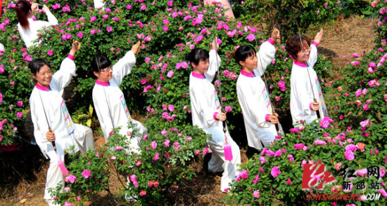 红网新邵站4月29日讯(通讯员 邓洪涛)4月26日,雾散响晴,天高水蓝。依山傍水的新邵县大新乡大东村,满山满坡玫瑰盛开,花香四溢。当天,“雪湘玫瑰节”在大新举行,玫瑰花香吸引了上万游客齐聚观赏。