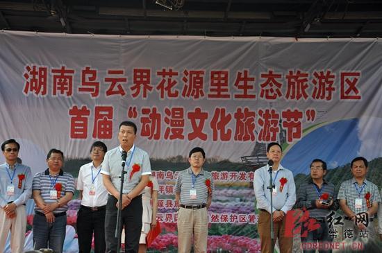 桃源县委副书记唐智勇宣布乌云界首届动漫文化旅游节开幕。