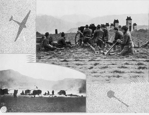 杂志中记录了日军侵略山西时的众多战役:杂志第5页,小标题为“炮击黄河对岸及敌方阵地”,在该页使用的两张图片中,日军以跪姿或站姿守在迫击炮前,准备发起进攻。图片说明标注称:“皇军在可以遥望陇海线潼关驿的黄河右岸,持续猛烈炮击驻扎在对岸的败军”;“我军部队持续炮击山西阵地的心脏——灵石东部”。据此,日军总结:“皇军在纪元佳节2月21日,对中国北部发起了猛烈的全面进攻,彻底击败了驻扎在山西南部及京汉沿线的敌军,保持着一天攻占一座城市的战果。转战不足一个月,终于完全占领了黄河左岸的所有地区。”