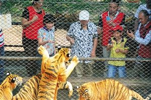 昨日,吴树粱一家三口在义工的陪同下游玩了深圳野生动物园。深圳商报记者 解冰通讯员黄显达李木生 摄
