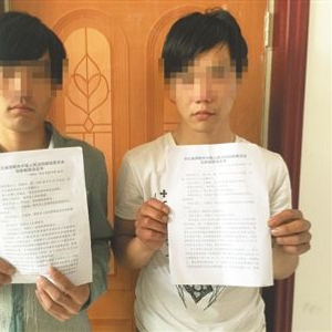 听说要为自己恢复名誉,在外打工的李晓岭(左)和齐少欢(右)专程赶回家,两人展示了国家赔偿决定书。新京报记者 王大鹏 摄