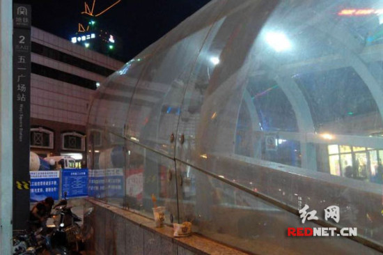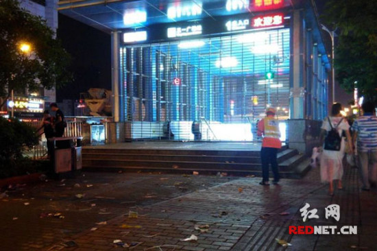 (节后长沙五一广场地铁口垃圾遍地,深夜11时刘嗲嗲在清理台阶上的垃圾。)
