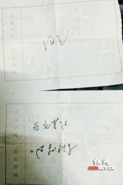 “当时我就震惊了,这是什么罚款,就盖了一个慈利县运输管理所的公章,收费项目就画了一个不知道是个什么字,有这样执法的吗?”发帖人称罚单上的字很潦草,无法辨认清楚。