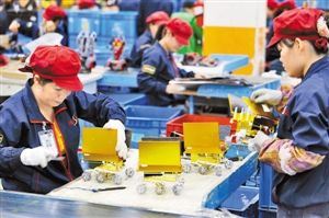 题图:2013年12月3日,东莞市美驰图公司的工人在生产线上组装“月兔”号月球车模型。