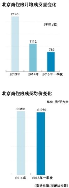 事实上,北京商住市场成交量已连续两年出现大幅下挫。数据显示,2013年商住产品的月均成交套数为2198套,2014年降至1112套,同比大降5成;2015年一季度,商住产品的月均成交套数进一步下滑至782套,回落幅度高达3成。