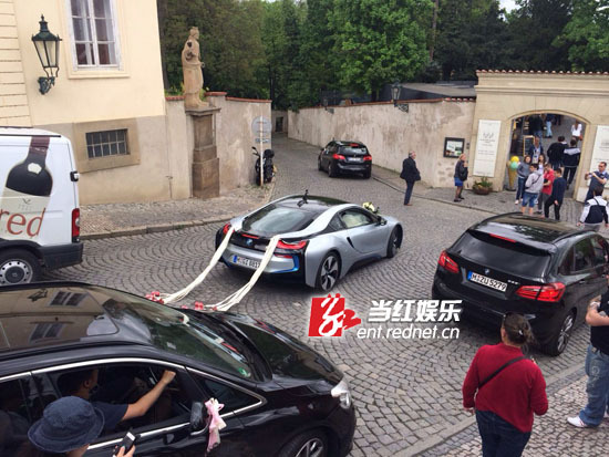 (欧弟婚礼现场的婚车。)
