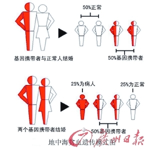 为何会连生几个地贫儿?尹爱华解释说,地贫作为一种基因遗传病,其遗传规律是清楚的:若夫妻为同型地贫基因携带者,每次怀孕,其子女有1/4的机会为正常,1/2的机会为基因携带者,另1/4的机会为重型地中海贫血患者。