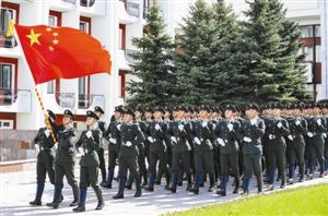 解放军三军仪仗队今天英武亮相红场