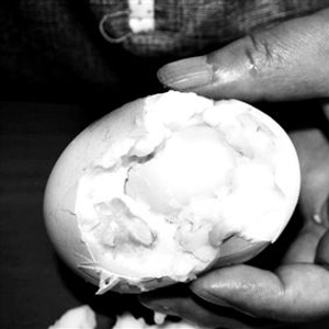 昨天下午,记者接到报料来到高淳区桠溪镇蓝溪社区高兰村村民王小兵承包的山地里,这枚巨型鸡蛋是他家一只母鸡产下的。据王小兵介绍,他的承包地在当地红石山大山水库旁,他的100多亩山地主要以经营农家乐和客栈为主,但他的山地里还喂养了200多只下蛋的母鸡,平常下的蛋作为土特产招待客人。王小兵说这些鸡中有养了两三年的母鸡,大的有七八斤,但从来没见过下过这么大的蛋,一周前家人发现其中一只母鸡下了一枚巨型鸡蛋,不慎打破发现蛋里面有蛋清蛋黄还滚出一枚鸡蛋来,这一奇事让周边村民感到惊讶,时隔一周这只母鸡又产下一枚巨型鸡蛋,比鹅蛋还要大,重达四两,比普通鸡蛋大出三倍还要多。在王小兵家,为了证实这枚鸡蛋里是否有蛋,他将鸡蛋煮熟,剥开后记者看到蛋里面不但有蛋白和蛋黄,由于鸡蛋太大,王小兵按照平常煮鸡蛋的时间去煮,剥开后蛋白还没煮熟,稀奇的是剥开鸡蛋里面还藏有一枚鸡蛋,打开里面的鸡蛋同样有蛋白和蛋黄,这样稀奇的事当地村民都说没见过。