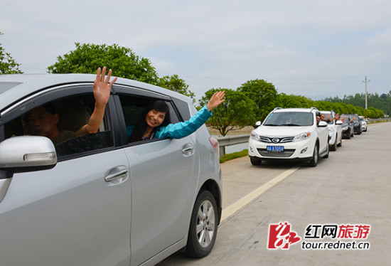 (红网网友一行近30人欢歌笑语,自驾赴约杜鹃花季。)