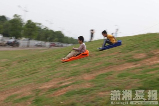 湘江浏阳河河堤成滑草场 孩子安全存隐患(图)