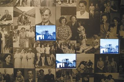 2015年5月7日,伦敦,帝国战争博物馆,一面照片墙上展示了二战时期英国一家人的生活照片。