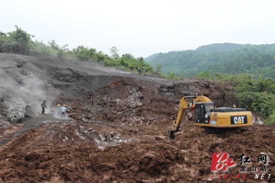 刘家寨隧道出口施工现场红网龙山站5月14日讯(分站记者 田辉)5月13日,广铁集团公司副总经理、沪昆铁路客运专线湖南有限责任公司董事长周荣,中铁五局总经理张回家,沪昆铁路客运专线湖南有限责任公司副总经理、黔张常铁路指挥部指挥长李永才等一行来到龙山,就黔张常铁路建设情况进行调研。龙山县政协主席、县黔张常铁路建设协调指挥部指挥长吴少叶,县政协副主席、县黔张常铁路项目建设领导小组副组长王本东等领导陪同调研。