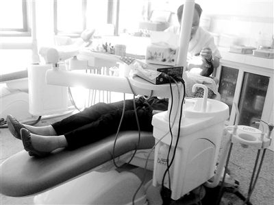 昨天下午,南京晨报记者跟随一名赵姓牙齿疼痛患者来到这里。该患者一后槽牙出现孔洞。