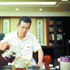 5月13日,湖南省怡清源茶业有限公司董事长简伯华在品茶。