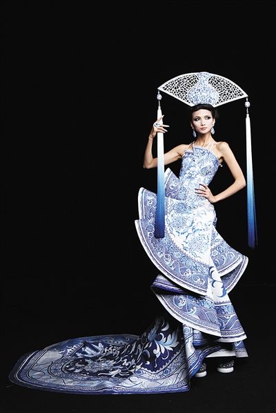 今年的大都会博物馆的展览共展出了我的两件代表作品:青花瓷和大金。今年这件“青花瓷”礼服在大都会上与Roberto Cavalli、John Galliano等青花作品同时展出,这也是一种文化的力量。