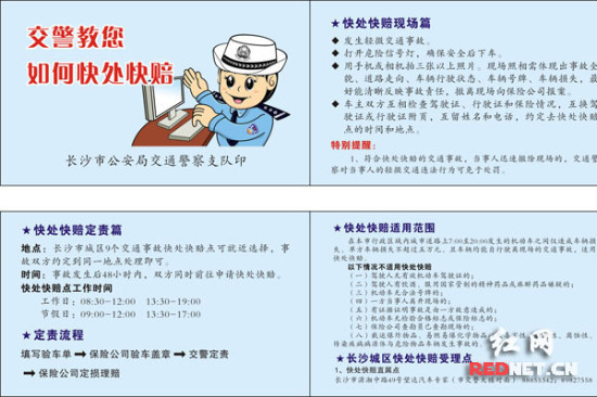 张期良称,今年5月5日开始,长沙市交警支队122大队“快处快赔”中队和省保险协会协调各大保险公司,对“快处快赔”作出了三个方面的修改: