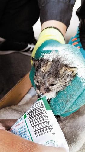 有爱的时候,世界总是很美好 4只刚出生的小猫仔装袋被弃 数字城管督察员扮“奶爸”社会爱心人士给小猫温暖的家