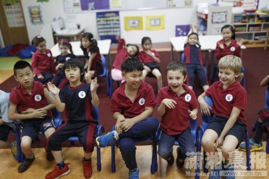 目前,从幼儿园到初中,几乎都是混龄班级,也就是让两个不同年龄阶段的孩子聚集在一起上课。比方说幼儿园小班和中班一起教学、幼儿园大班和一年级一起。副校长黄卫民(新加坡籍)解释,大孩子可以帮助小的孩子,小的孩子则以大孩子为榜样,混龄式教育更有利于孩子的成长。