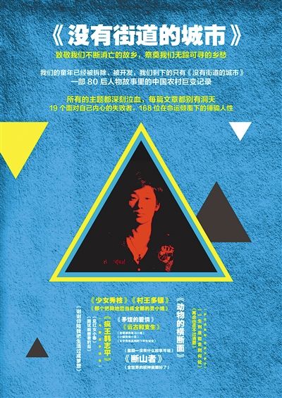 今日徜徉于鳞次栉比的楼宇间的城里人,甚至是从农村迁居到城市、栖居在某栋住宅楼的“半个”城里人,再次回望乡村时,总会感觉隔了一层物质之外的东西。我们眼中的农村人,或许就像苏先生小说里的“老傻”:他所代表的农村与城市之间,除了隔着高楼大厦、家用电器和汽车,还隔着更为深远的社会观念。然而苏先生却很执拗,他一遍遍在文字里重温幼时对于苏庄的记忆,试图打破两个世界的界限,譬如他在豆瓣上的长篇连载《苏庄遗嘱》,譬如这本《没有街道的城市》。