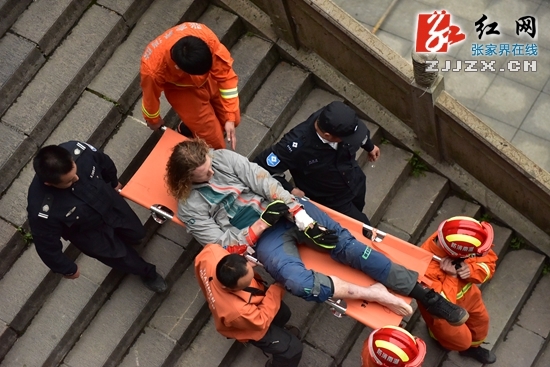 红网张家界站5月24日讯(分站记者 金亚平 张潘)5月24日,以天门山999级天梯作赛道,参与2015中国·张家界天门山天梯速降国际精英赛的9名选手上演了一出现实版的“速度与激情”,最终加拿大的加勒特·比勒以29秒940夺得此次速降竞速赛的冠军。