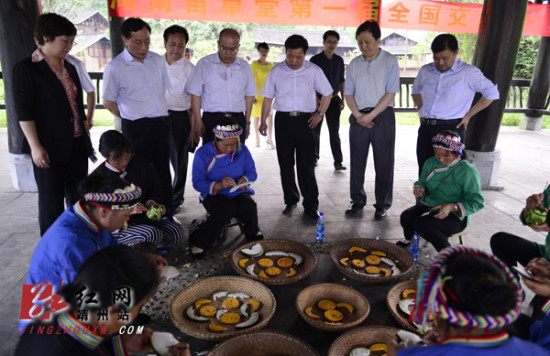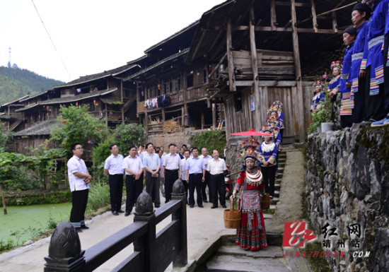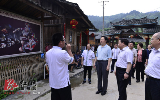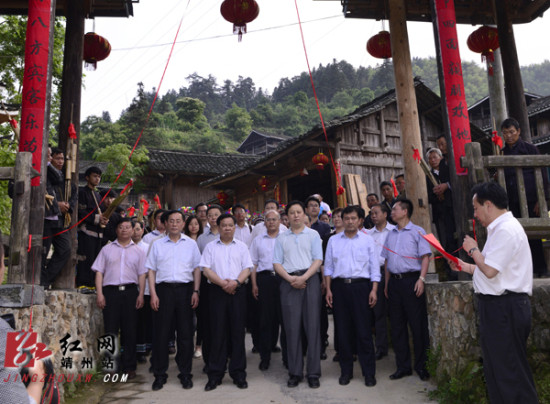 红网靖州站5月27日讯(通讯员 龙本亮 曾红梅) 5月26日下午,国家民委副主任罗黎明,省民宗委主任徐克勤一行抵达靖州,考察地笋苗寨特色村寨建设,并为地笋苗寨荣获“中国少数民族特色村寨”揭牌。